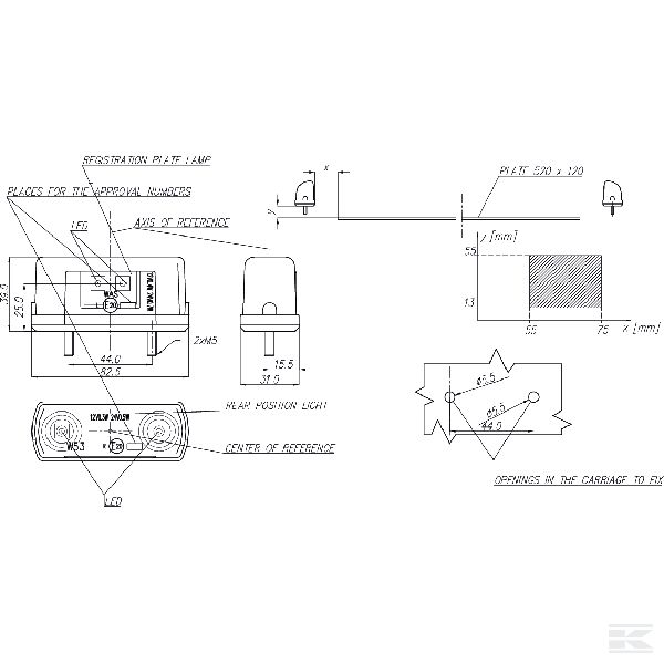Attālums starp skrūvēm (mm):44