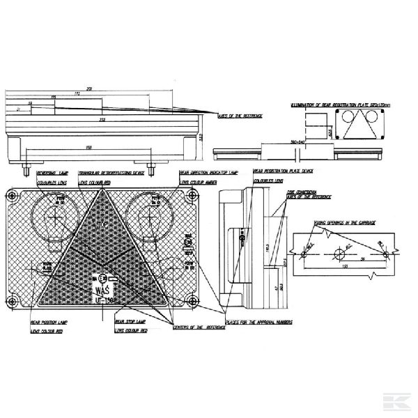 Aizmugurējais lukturis, W-21, labais, 12-24 V
