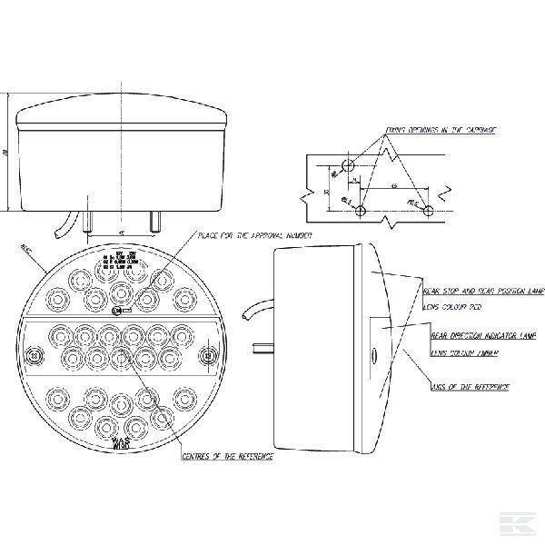 LED Aizmugurējais lukturis, 232, W-19D, 12-24 V