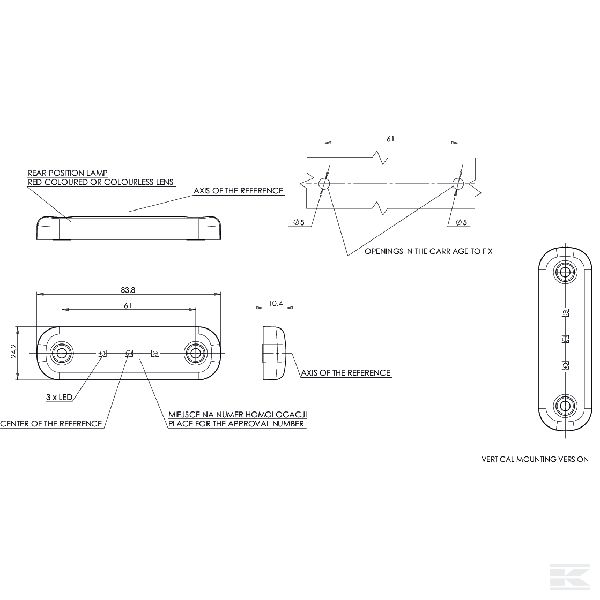 LED Gabarītlukturis, aizmugurējais, 709, 12-24 V