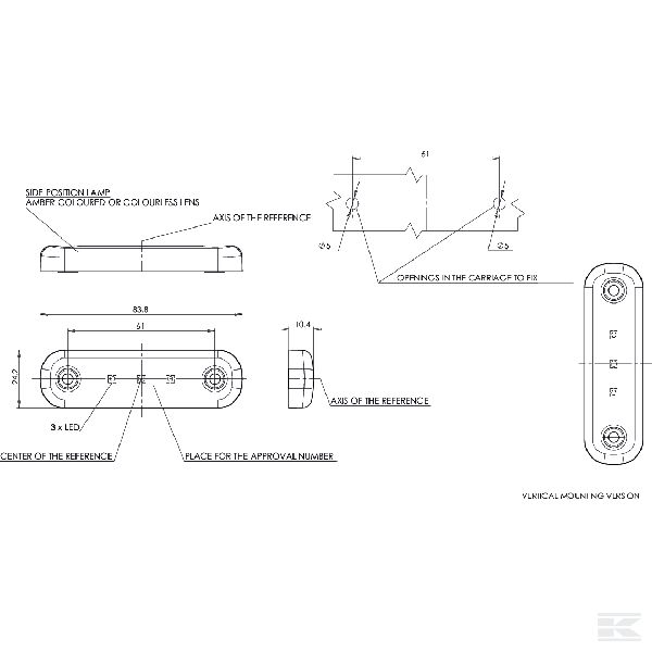 LED Gabarītlukturis, sānu, 708, 12-24 V