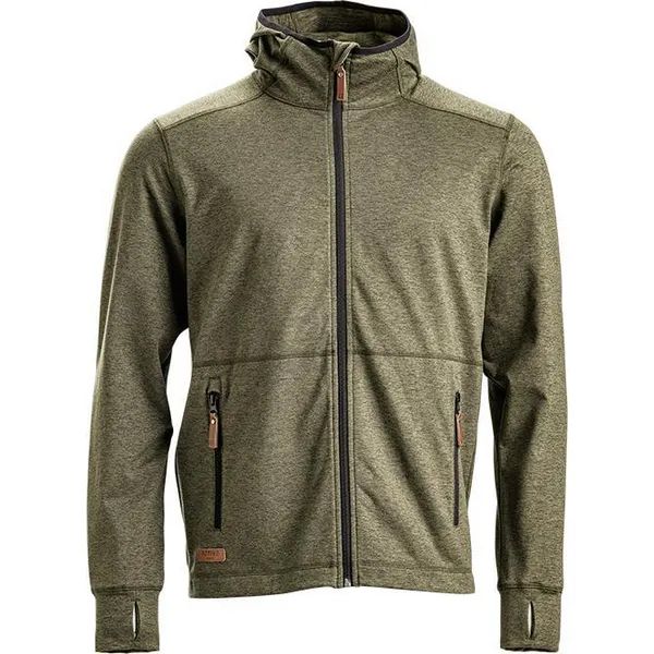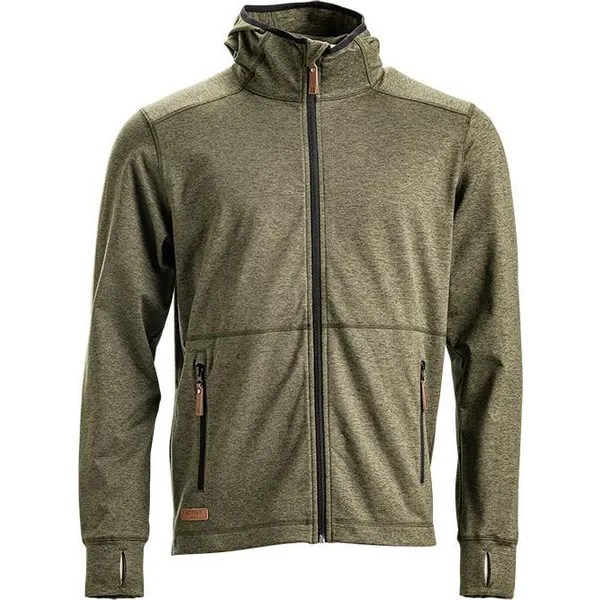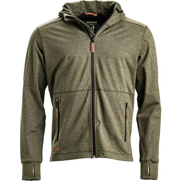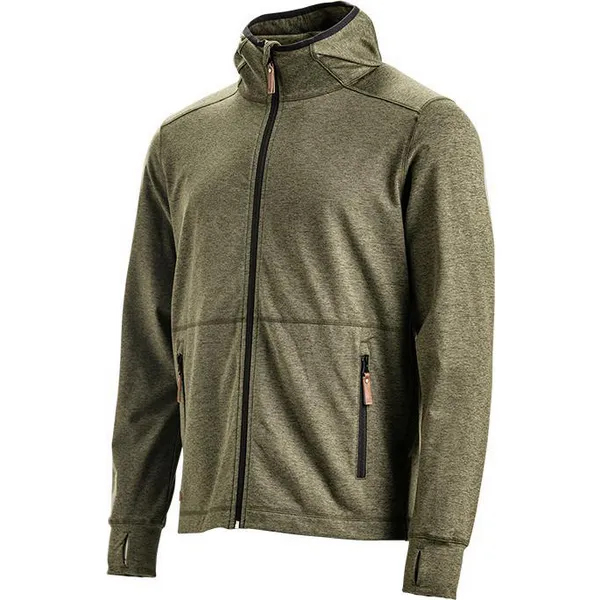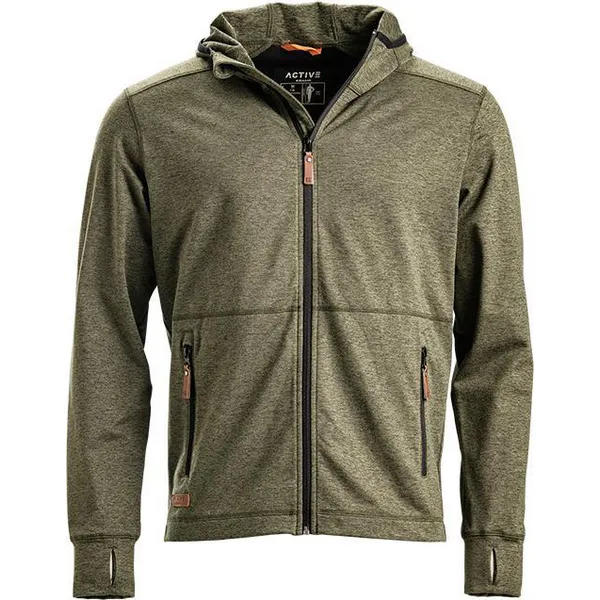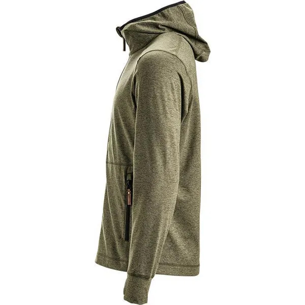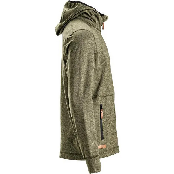 Darba džemperis ar augsto apkakli, rāvējslēdzēju un kapuci / olīvu krāsas