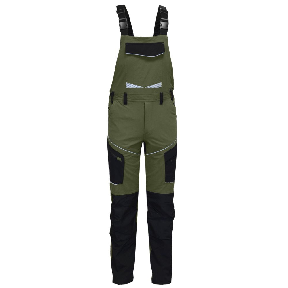 Mūsdienīgas darba kombinezona bikses Ultra Stretch haki krāsā, izgatavotas no augsti elastīga 4 virzienu stiepuma auduma, nodrošina vieglu un ērtu valkājumu. Audums stiepjas un pielāgojas ķermeņa formai, piemērots darbam pietupienā vai ceļos. Kombinezons apvieno funkcionalitāti ar modernu dizainu un augstu redzamību.