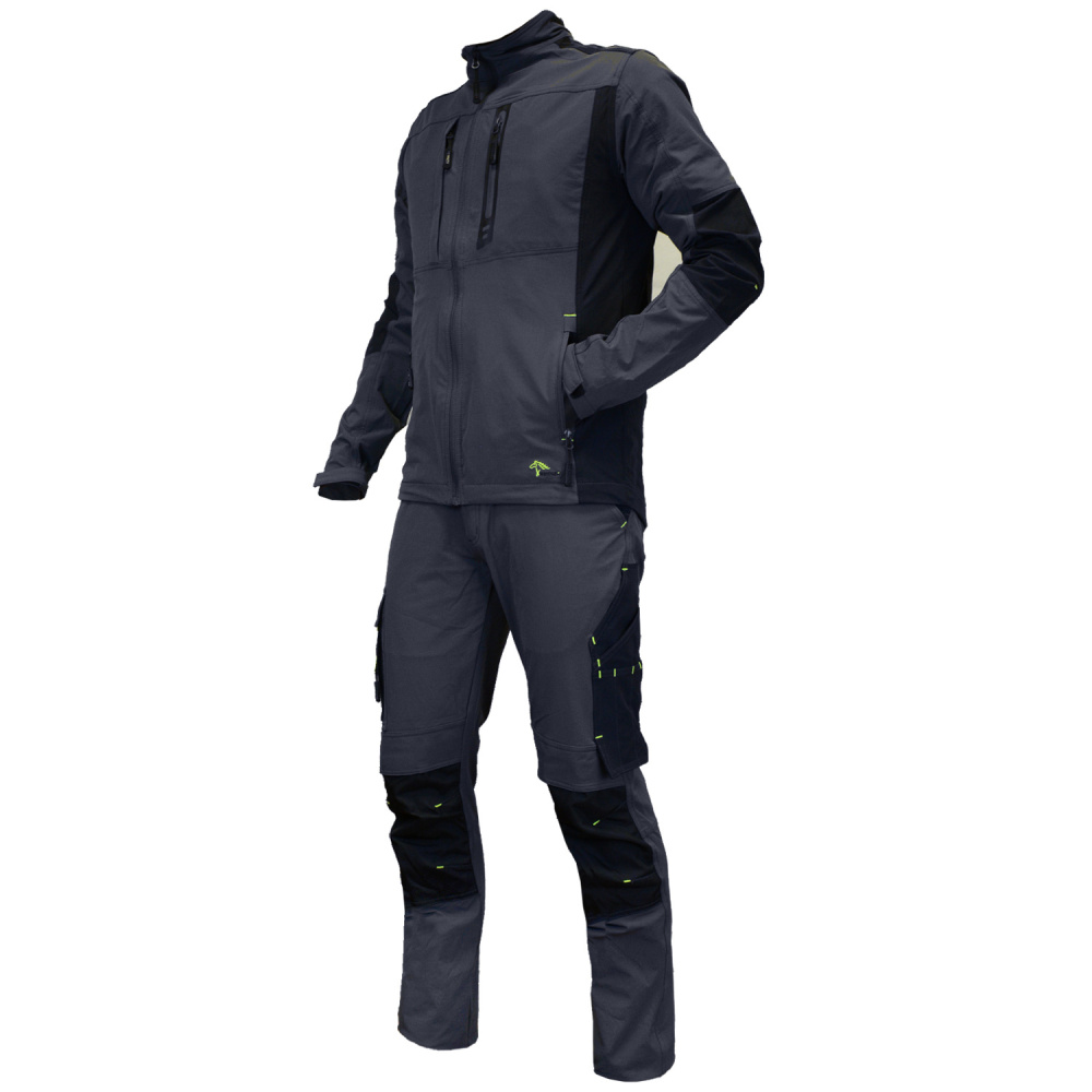 Darba jaka AirFlex izgatavota no augsti elastīga 4 virzienu stiepuma materiāla, kas nodrošina maksimālu kustību brīvību un komfortu darba laikā. Jaka ir viegla, izturīga un piemērota intensīvai lietošanai. Mūsdienīgs dizains ar pelēku pamattoni un spilgti zaļiem akcentiem. Var kombinēt ar atbilstošām AirFlex biksēm vai kombinezonu.