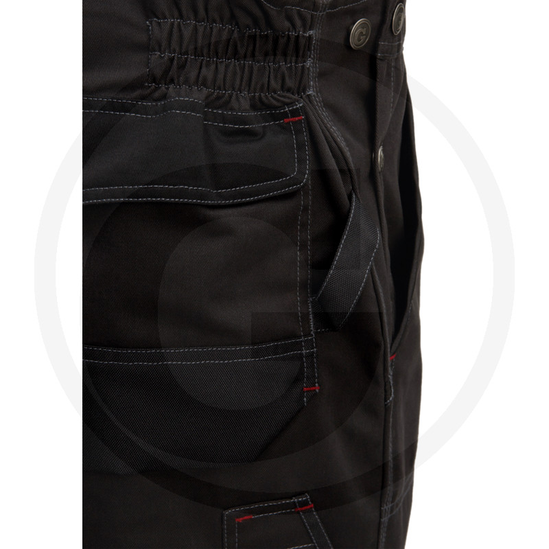 - 2 aizmugurējās kabatas ar atloku un dibenu, kas pastiprinātas ar Oksfordas audumu, spiedpogas un aizdare ar āķi un cilpu