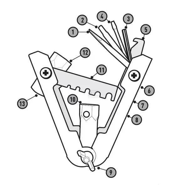 sešstūra uzgriežņu atslēga (4 mm) visu pārējo zāģu skrūvēm (3)