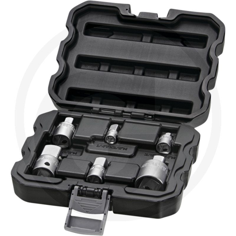 6 gabalu Sešdaļīgs komplekts ar visizplatītākajiem adapteriem visiem parastajiem sprūdrata izmēriem.