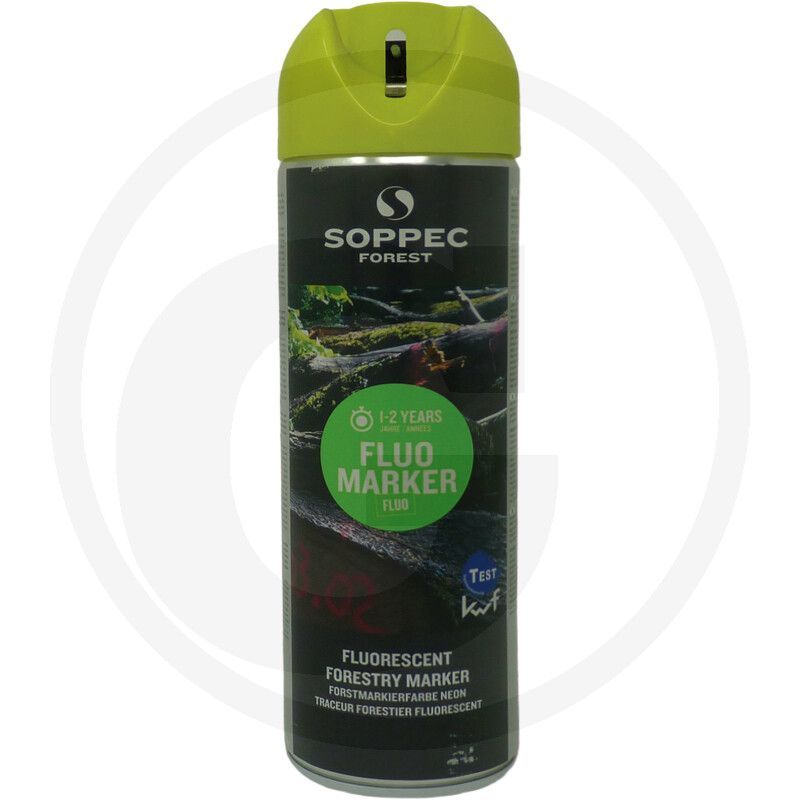 FLUO MARKER® ir piemērots daudziem pielietojumiem: koku marķēšanai īstermiņa un vidēja termiņa ciršanai, marķēšanai retināšanai, audžu vai meža gabalu pagaidu norobežošanai, baļķiem un kokmateriāliem, kas gaida pārdošanu, zāģmateriālu uzskaitei... fluorescējošais mežsaimniecības marķieris padara marķējumus labi redzamus tālumā.