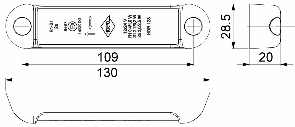 Aizmugures lukturis HOR 128, 3 funkcijas