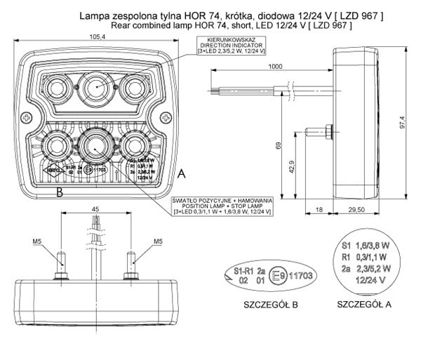 Aizmugures lukturis HOR 74, LZD 967