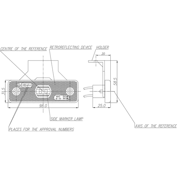 KRAMP LED sānu gabarītlukturis dzeltens 98x31.5, vads