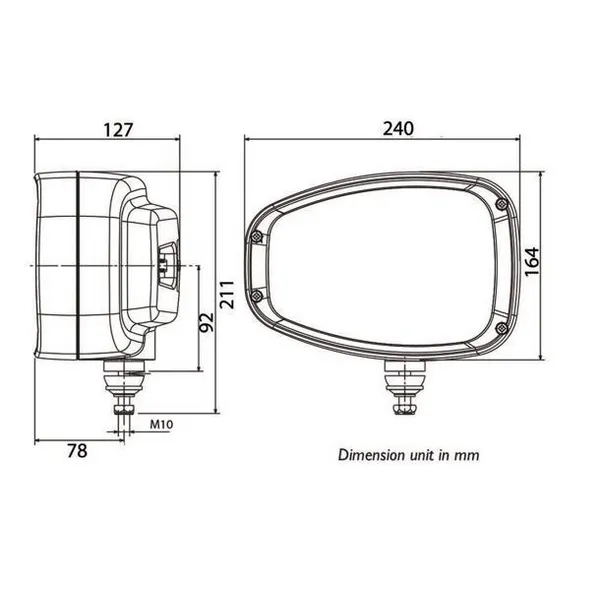 Lukturis paredzēts montāžai transportlīdzekļa priekšpusē - pa kreisi!