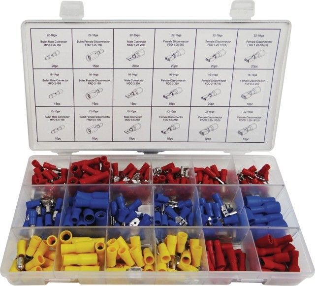 Komplektā ietilpst 280 gab. dažāda veida savienojumi.