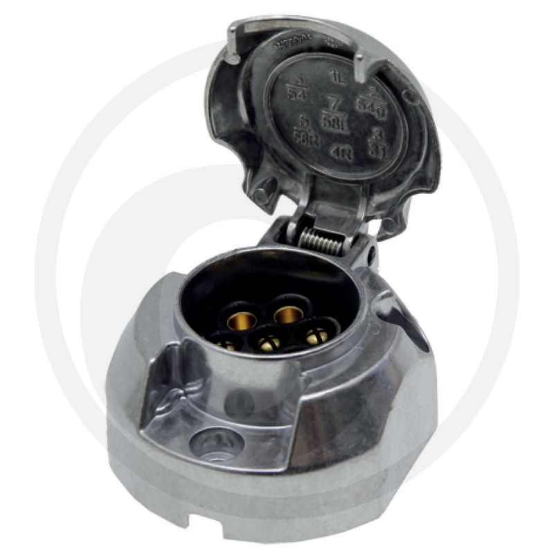 DIN/ISO 1724 alloy with screw connections, voltage of 6-12 V up to 16 A (1,5 mm²) at 12 V up to 25 A (2,5 mm²) at 24 V 1 shut-off contact, rear fog light on vehicle is disconnected when the plug is connected, removable insert, flattened shape for easier assembly and disassembly, to fit as plug 50743895
