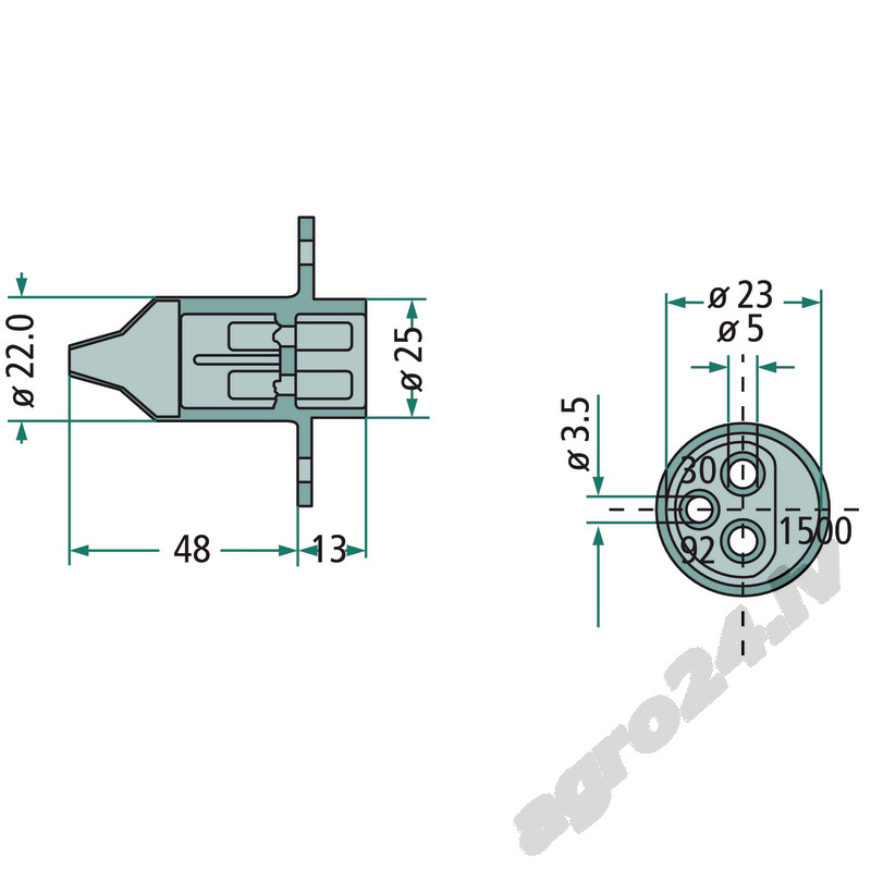 2 caurumu stiprinājums 12 / 24V 2 x 25 ampēri, 1x5 ampēri,