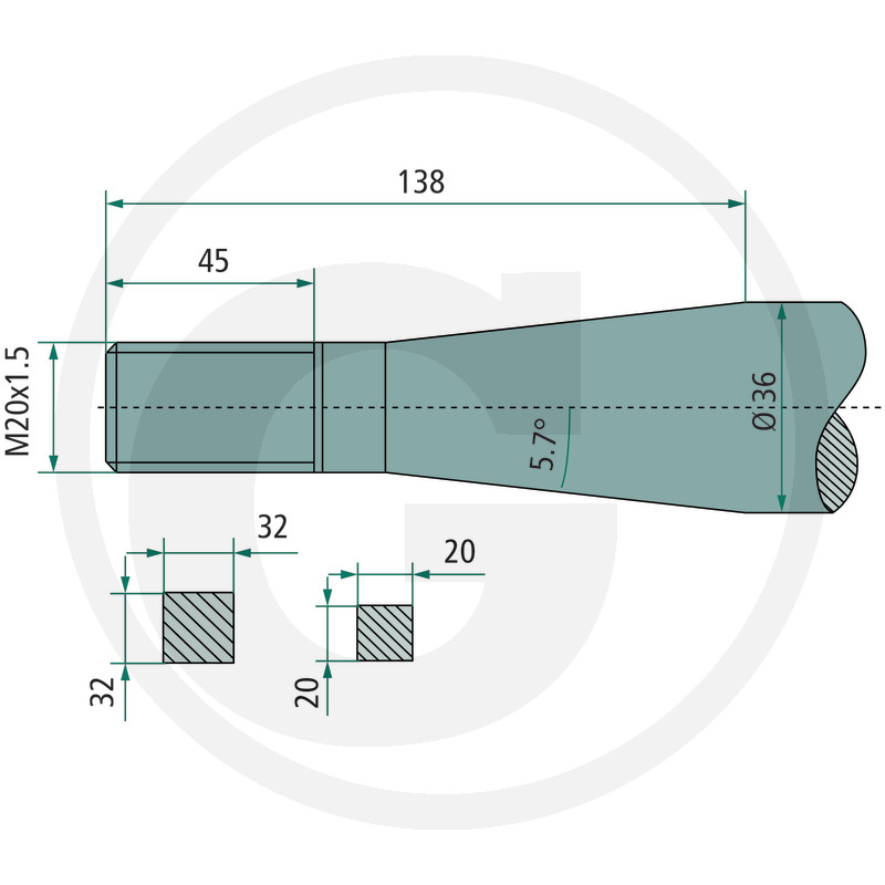 Pīķis, M20 x 1,5 mm, kvadrātveida