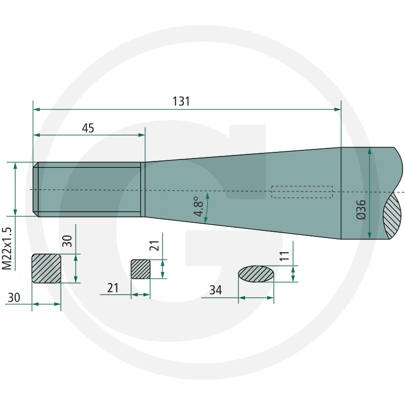 Pīķis, M22 x 1,5 mm, kvadrātveida, konuss K001