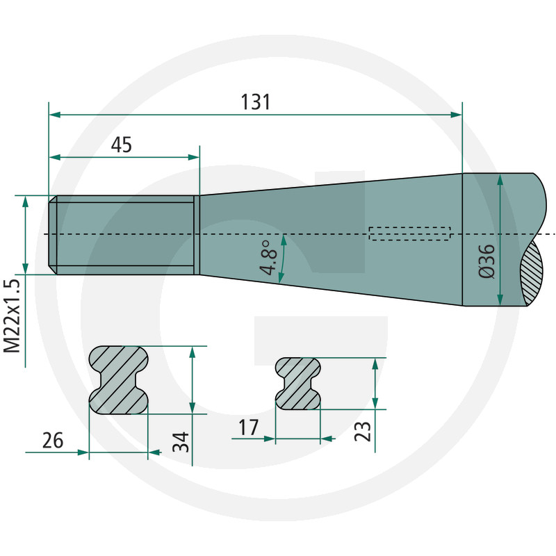 Pīķis, M22 x 1,5 mm, kvadrātveida, konuss K001
