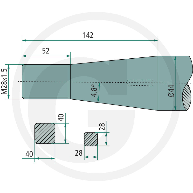 Pīķis, M28 x 1,5 mm, kvadrātveida, konuss K013