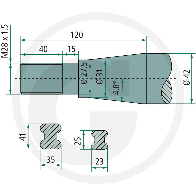 Pīķis, M28 x 1,5 mm, kvadrātveida, konuss K157