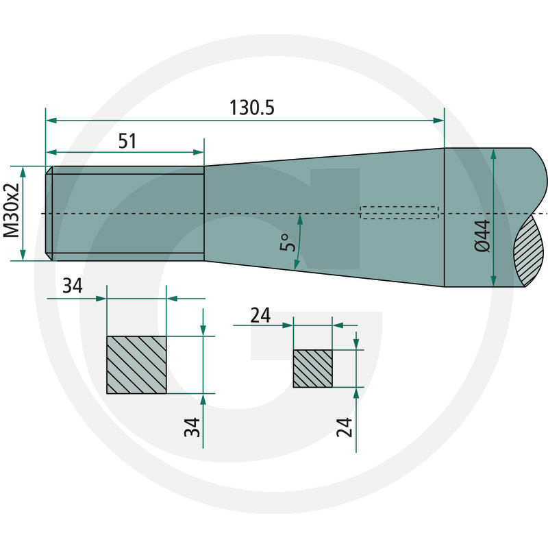 Pīķis, M30 x 2 mm, kvadrātveida, konuss K012