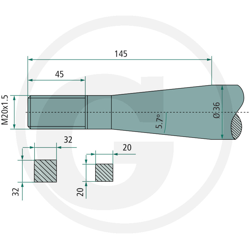Pīķis, M20 x 1,5 mm, kvadrātveida, konuss K006