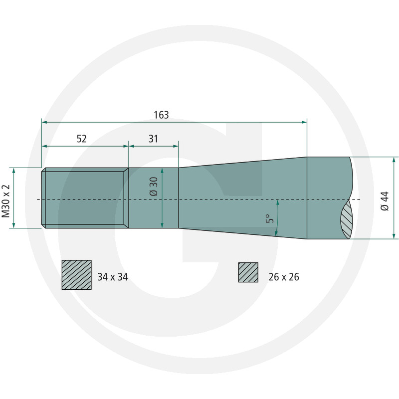 Ieliekts pīķis, M30 x 2 mm, kvadrātsveida, konuss K143