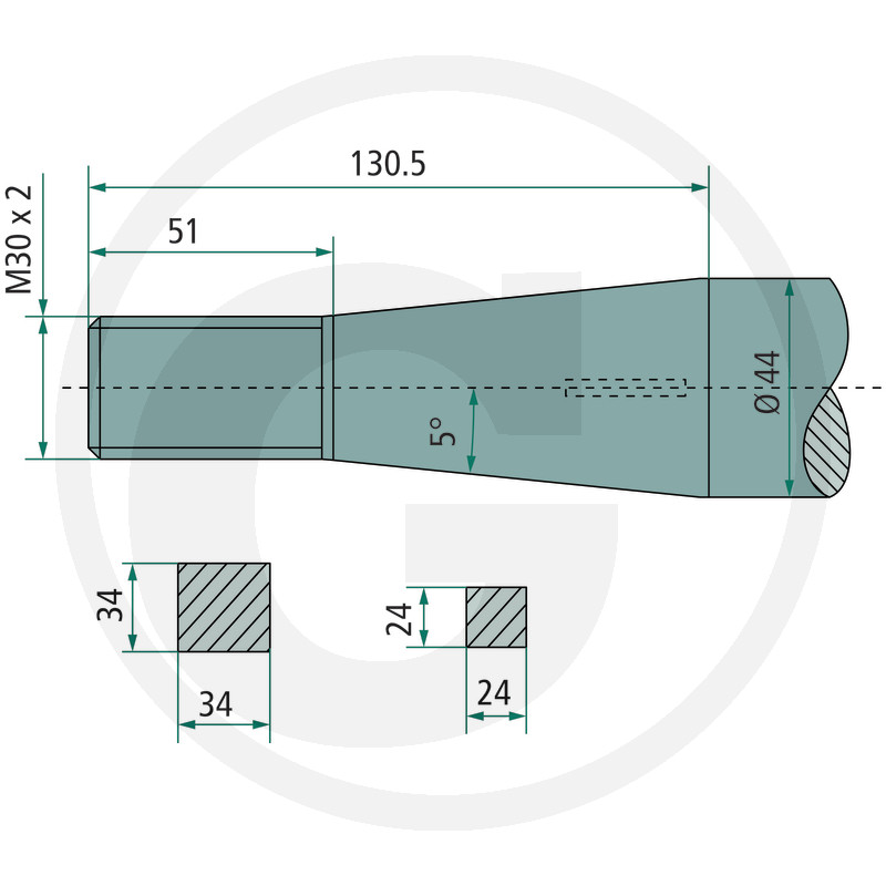 Ieliekts pīķis, M30 x 2 mm, kvadrātsveida, konuss K012