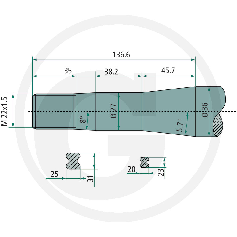 Izliekts pīķis, M22 x 1,5 mm, zvaigzne, konuss K109
