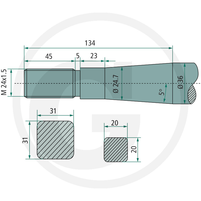Izliekts pīķis M24 x 2 mm, kvadrātveida, konuss K142