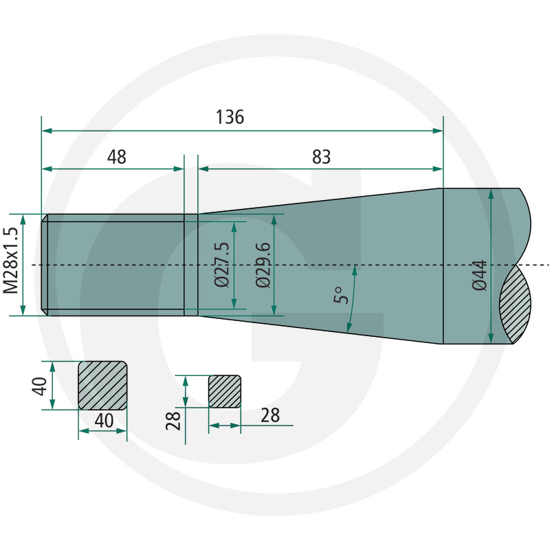 Pīķis, M28 x 1,5 mm, kvadrātveida, konuss K126