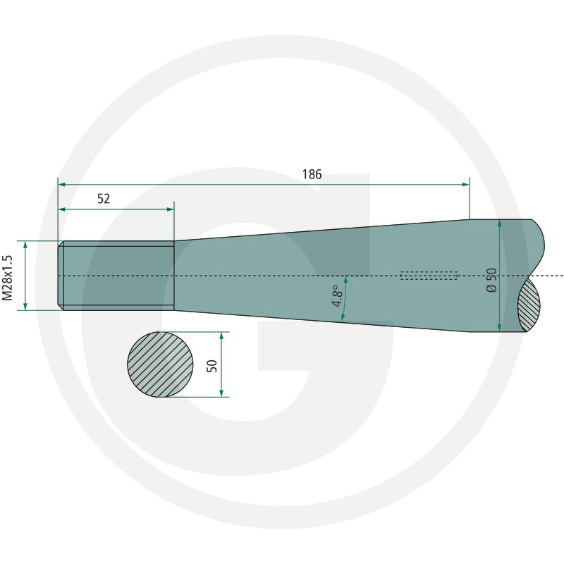 Pīķis, M28 x 1,5 mm, apaļš, konuss K104