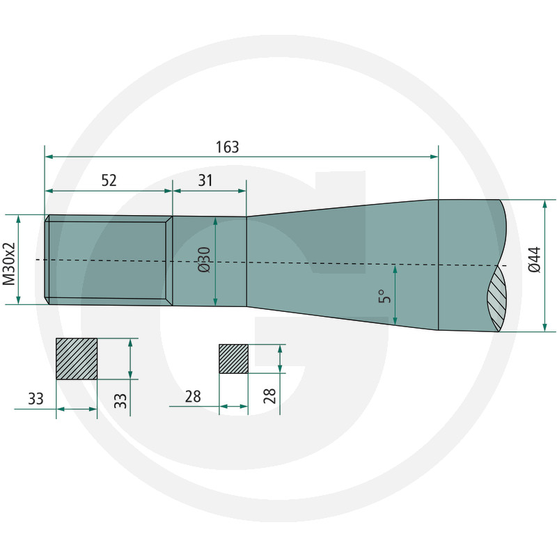 Ieliekts pīķis, M30 x 2 mm, kvadrātveida, konuss K143