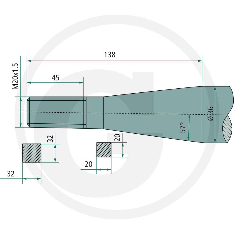 Pīķis, M20 x 1,5 mm, kvadrātsveida, konuss K005
