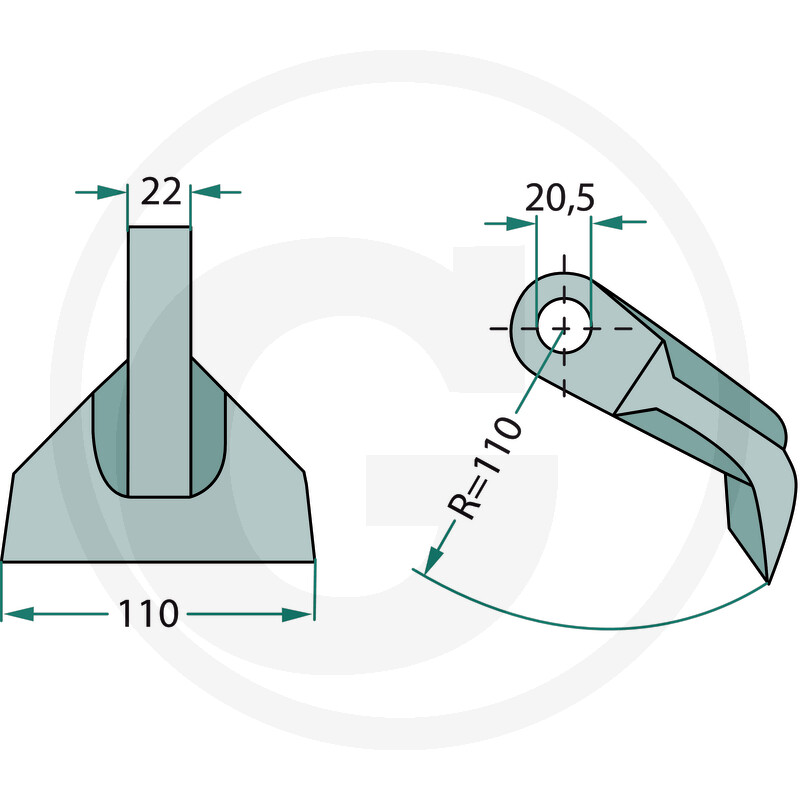 Mulčera āmurīts Ø 20.5, 110 mm, R=110