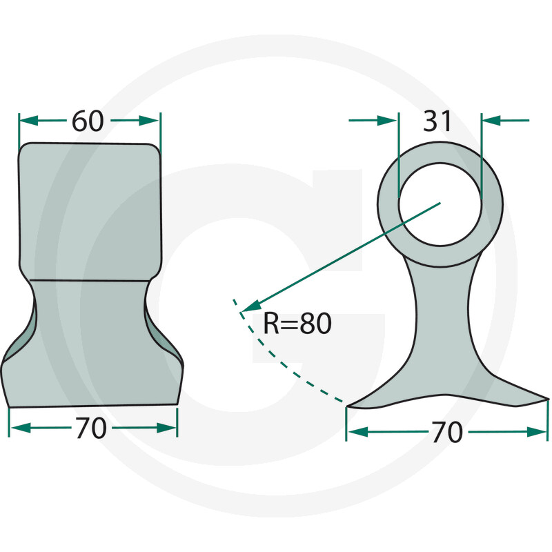 Mulčera āmurīts Ø 31, 70 mm, R=80