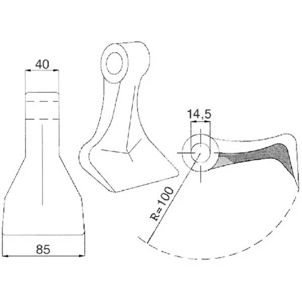 Mulčera āmurīts Ø 14.5, 85 mm, R=100
