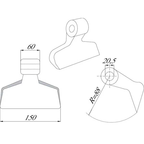 Mulčera āmurīts Ø 20.5, 150 mm, R=88