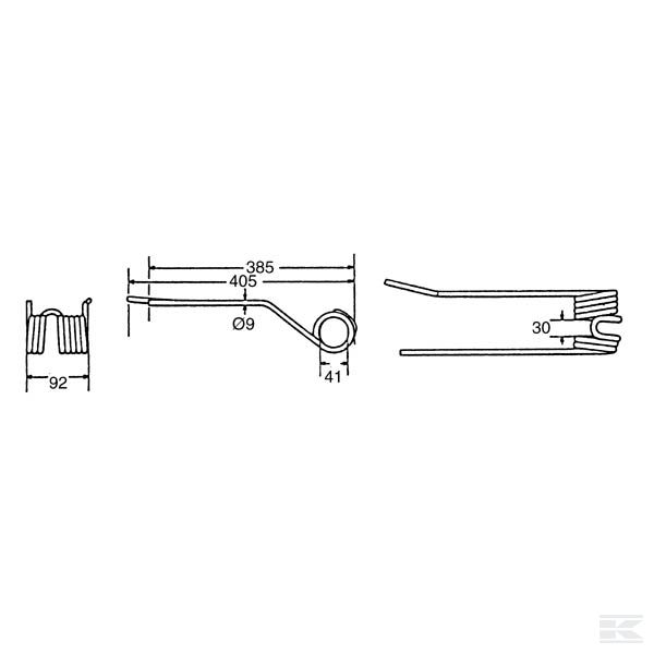 Rotējošā grābekļa zars, 405x92 Ø9 mm