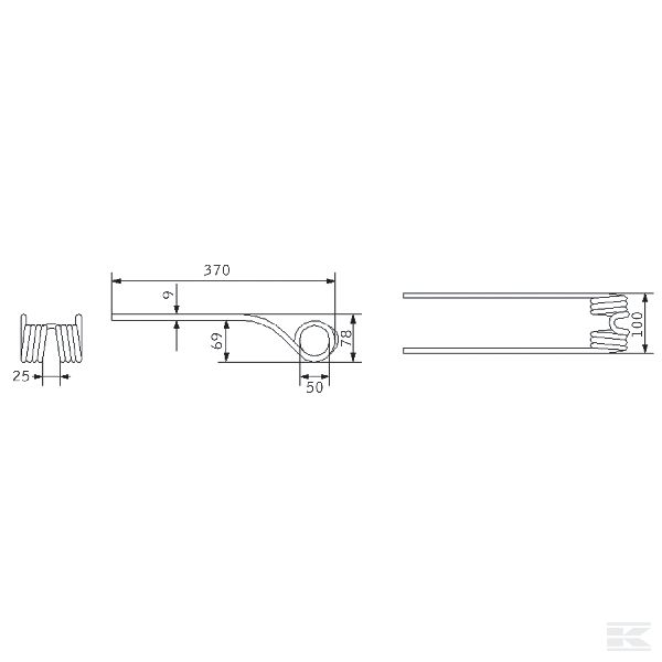 Rotējošā grābekļa zars, 370x100 Ø9 mm