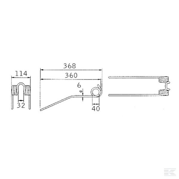 Rotējošā grābekļa zars, 368x114 Ø9 mm