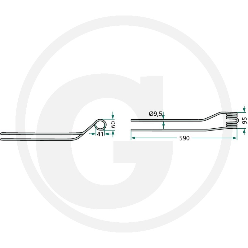 Rotējošā grābekļa zars, 590x92 Ø9,5 mm, kreisā puse ārpuse