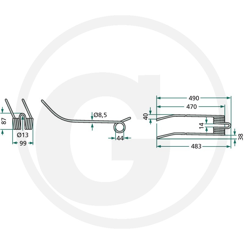 Rotējošā grābekļa zars, 575x90 Ø9,5 mm