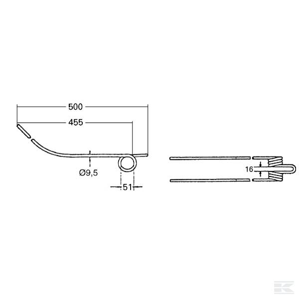 Rotējošā grābekļa zars, 500x92 Ø9,5 mm