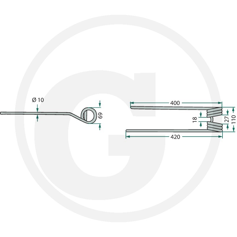 Rotējošā grābekļa zars,435x94 Ø10 mm