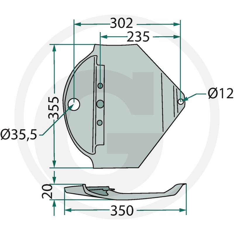 Pļaujmašīnas pēda, 350x355x20 mm, labā puse