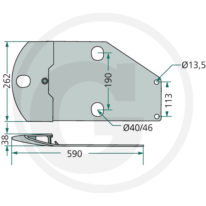 Pļaujmašīnas pēda, 590x262x38 mm
