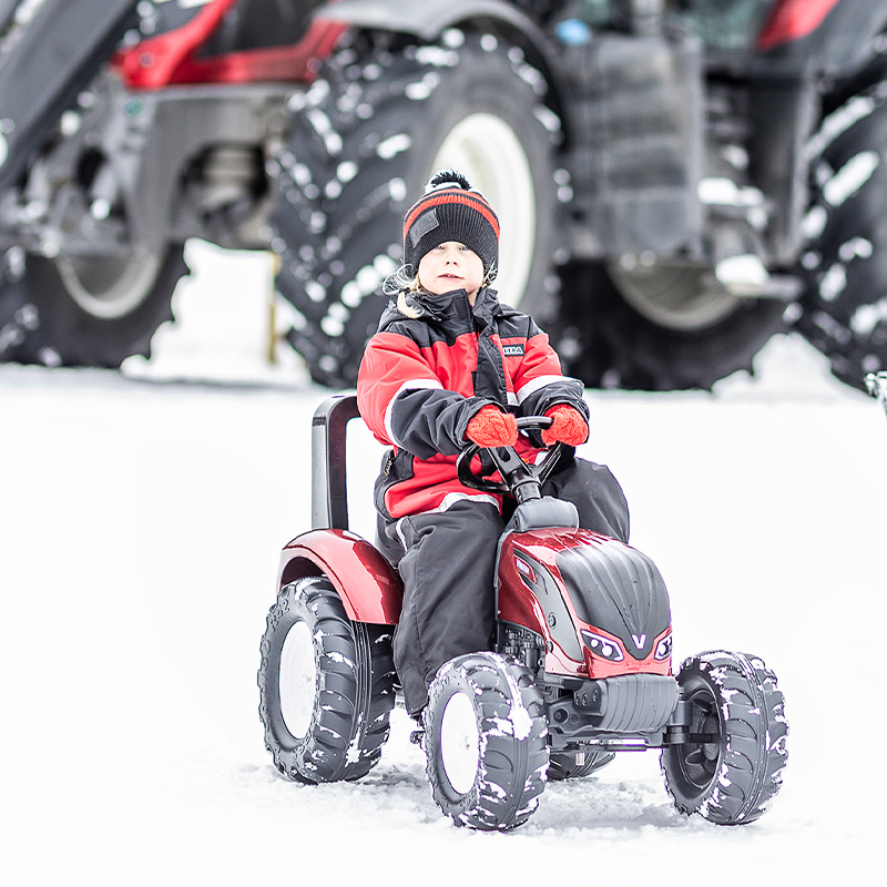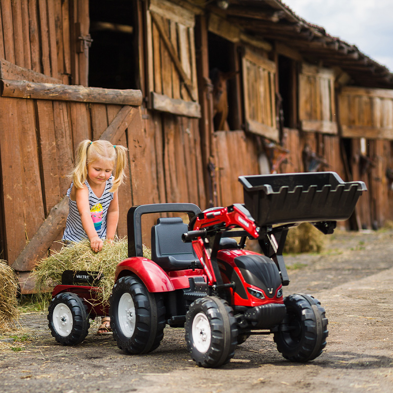 Modelis piemērots pārvietoties pa smiltīm, augsni vai lapām un pat pa nelielu sniega kārtu. Lai iegūtu vēl plašākas rotaļāšanās iespējas, tas ir aprīkots ar piekabi un iekrāvēju. Ar šo rotaļu traktoru bērns attīstīs autonomiju un iztēli, būdams gan dārznieks, gan lauksaimnieks.