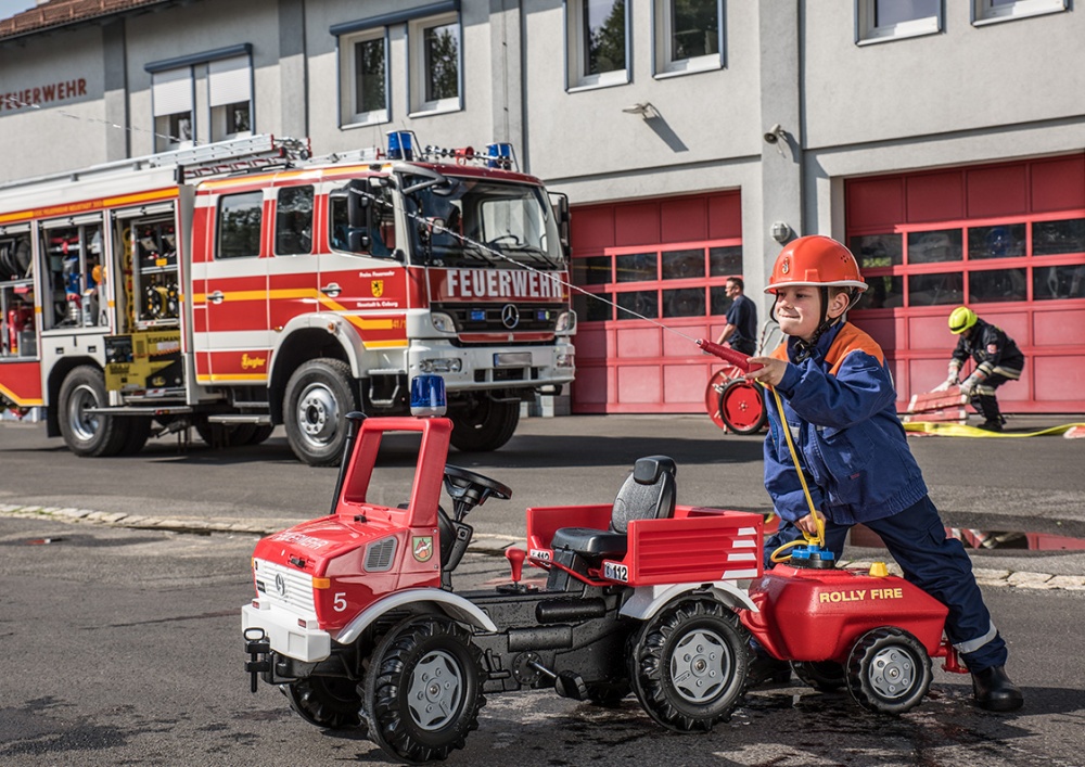 Spēļu Unimog ugunsdzēsēju mašīna, bremzes un bākuguns