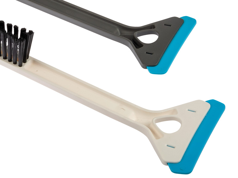 Garums 45cm. Viegls, bet izturīgs ABS plastmasas korpuss. Ilgstoši PET sari nodrošina sniega tīrīšanu bez piepūles. Ledus skrāpim ir nedaudz izliekta forma, kas, mainot skrāpēšanas leņķi, ļauj visefektīvāk atkausēt gan plakanu, gan nedaudz izliektu stiklu. Ledus skrāpja stūrus var izmantot, lai apstrādātu pat nelielas vietas, piemēram, sānu spoguļus. Divas krāsas pelēka un balta.
